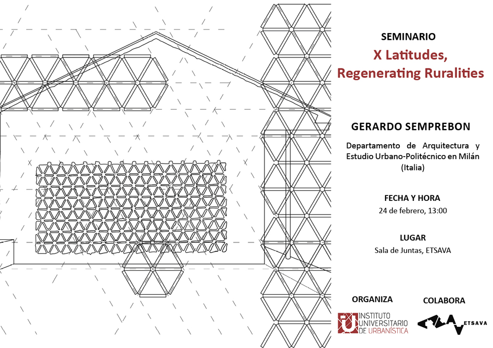 Gerardo Semprebon, arquitecto por el Politecnico de Milán presentará el martes 24 de febrero el seminario “X Latitudes, Regenerating Ruralities”. El acontecimiento tendrá lugar en la Sala de Juntas de a las 13:00 horas.