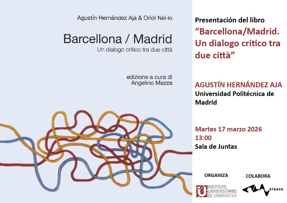 Agustín Hernández Aja, catedrático emérito de la universidad Politécnica de Madrid presentará el martes 17 de marzo a la 13:00 en la ETSAVA el libro “Barcellona/Madrid. Un dialogo critico tra due città”.